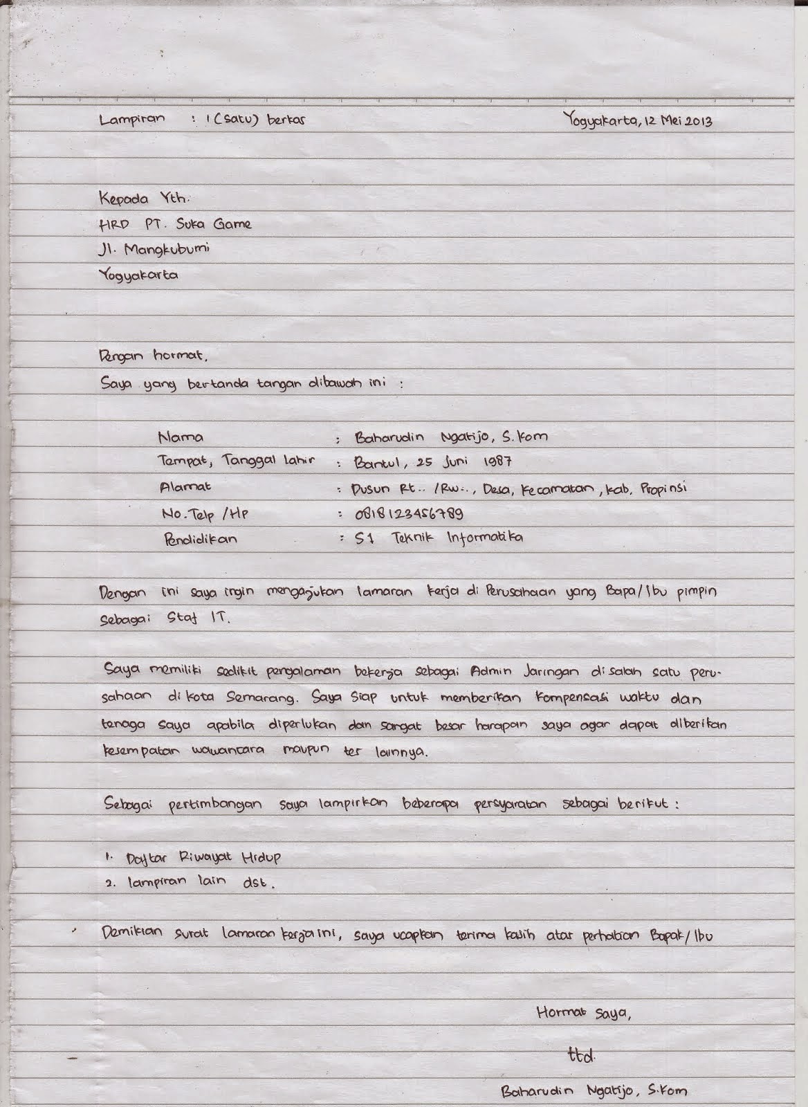 3 #daftar alfamart yang bisa dilamar 6 #kirim lamaran online. Mungkin di antara kalian ada yang sama dengan saya lagi lamar ke sana lamar. Demikianlah artikel dari duniapendidikan.co.id mengenai √cara membuat cv surat lamaran kerja : Tapi seiring bertambahnya jumlah applicants dan munculnya beragam channel , recruiters atau employers juga semakin kebanjiran. Sebelum lanjut ke nomer 4 ane mau kasih sedikit saran, bagaimana membuat dan melamar pekerjaan yang sopan dan. Melamar kerja ketika tidak memiliki pengalaman tentu saja membuat anda bingung, dan untuk itu anda harus bisa mencari cara bagaimana anda bisa by nyoman willy july 6th, 2020. Merinci tentang apa saja dokumen persyaratan lamaran kerja yang perlu kita siapkan sebagai senjata dalam melamar pekerjaan. Bagaimana cara membuat surat lamaran kerja agar cepat diterima. Cara membuat cv lamaran kerja. Artikel ini menjelaskan cara menulis biodata dan surat lamaran kerja agar aplikasi anda paling anda terkesan ingin mengajukan lamaran kerja ke banyak perusahaan jika membawa biodata secara berlebihan. Sama hal nya ketika anda ingin melamar kerja di pt. Pasalnya masih banyak para pencari kerja yang tidak mengetahui bagaimana cara mengirimkan lamaran lewat email dengan benar. Sebelum masuk ke contoh cv lamaran kerja sebaiknya kita pahami dulu pengertiannya.